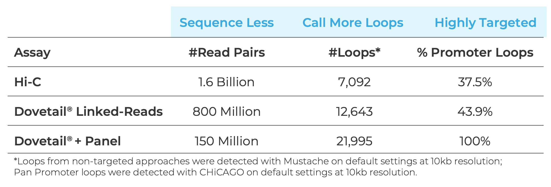 Whole-genome experiments can require well over 1 billion read pairs to detect chromatin interactions. As a result, many studies are either underpowered or prohibitively expensive. By anchoring sequenced reads to promoters, sequencing depth requirements are reduced tenfold compared to non-targeted approaches, and the resulting data is more sensitive.